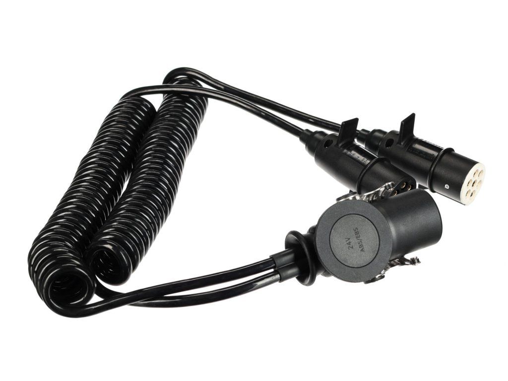 Propojovací spirálový adaptér z 15pin na 2x 7pin zástrčku (S+N) TRAILER CABLE 9, 24V, 3,5m SIXTOL