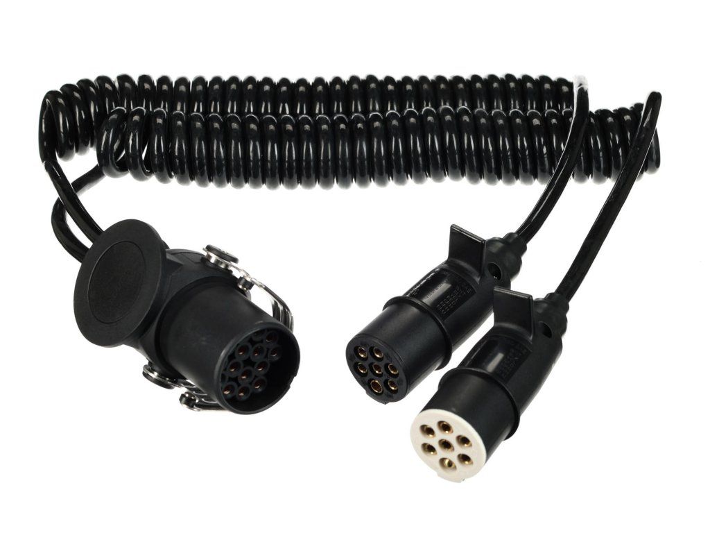 Propojovací spirálový adaptér z 15pin na 2x 7pin zástrčku (S+N) TRAILER CABLE 9, 24V, 3,5m SIXTOL SIXTOL SX1414