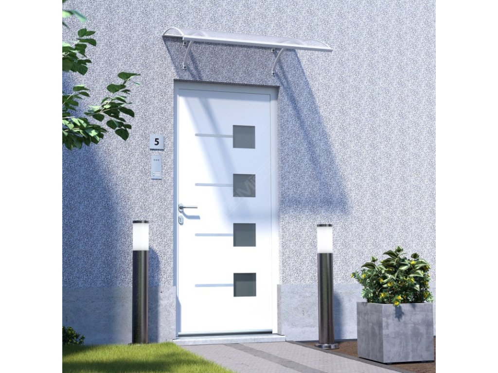 - Spolehlivá ochrana před nepřízní počasí - dveřní stříška účinně chrání vstupní dveře i celý vstupní prostor před deštěm, sněhem a nepříznivým počasím. Už žádné nepohodlí při odemykání v dešti – stříška vás udrží v suchu a zároveň omezuje působení vlhkosti, která může časem poškodit dveře i zárubně. Komůrkový polykarbonát navíc poskytuje ochranu před slunečním zářením a pomáhá zabránit blednutí barvy dveří či jejich poškození UV zářením.