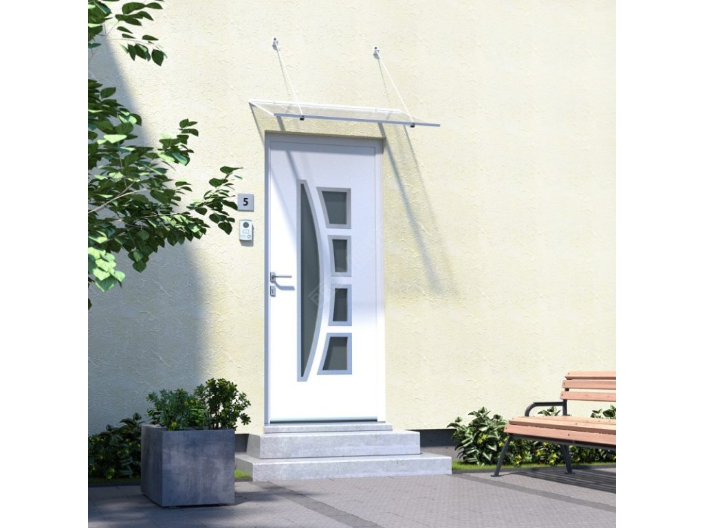 - Spolehlivá ochrana před nepřízní počasí - dveřní stříška účinně chrání vstupní dveře i celý vstupní prostor před deštěm, sněhem a nepříznivým počasím. Už žádné nepohodlí při odemykání v dešti – stříška vás udrží v suchu a zároveň omezuje působení vlhkosti, která může časem poškodit dveře i zárubně. Komůrkový polykarbonát navíc poskytuje ochranu před slunečním zářením a pomáhá zabránit blednutí barvy dveří či jejich poškození UV zářením.