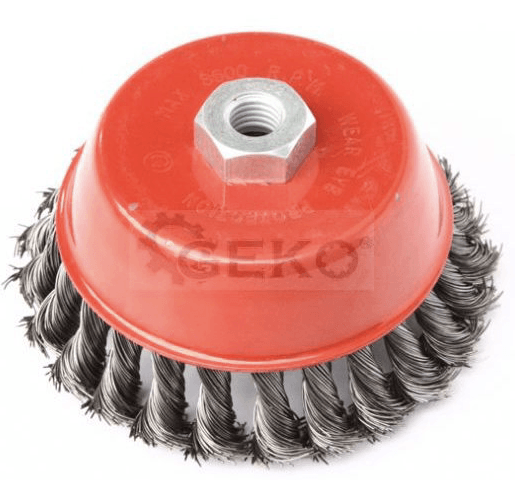 5) Hrnkový drátěný copánkový kartáč k odstraňování nátěrů z kovů.