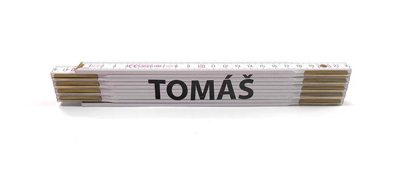 Skládací metr se jménem obdarovaného je dárek, kterému nelze odolat. Pokud nenajdete skládací metr, respektive dvoumetr, s požadovaným křestním jménem, můžete vybrat například nápis Táta, Miláček nebo Profík.