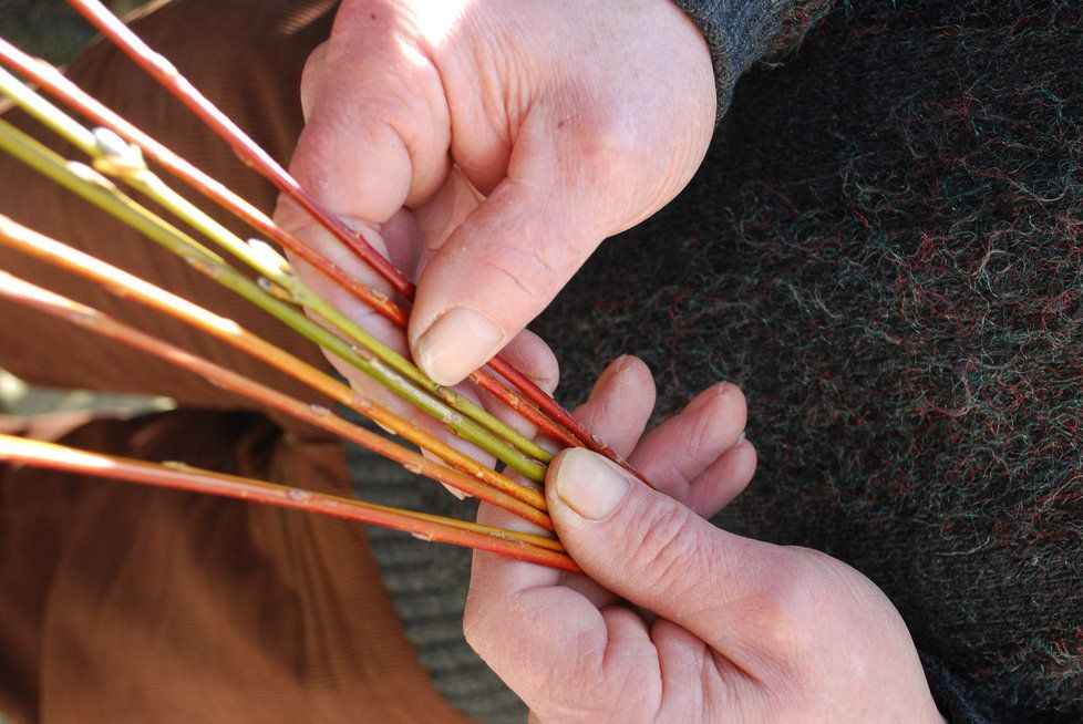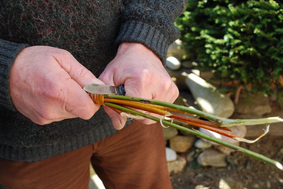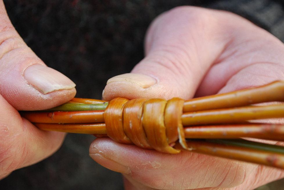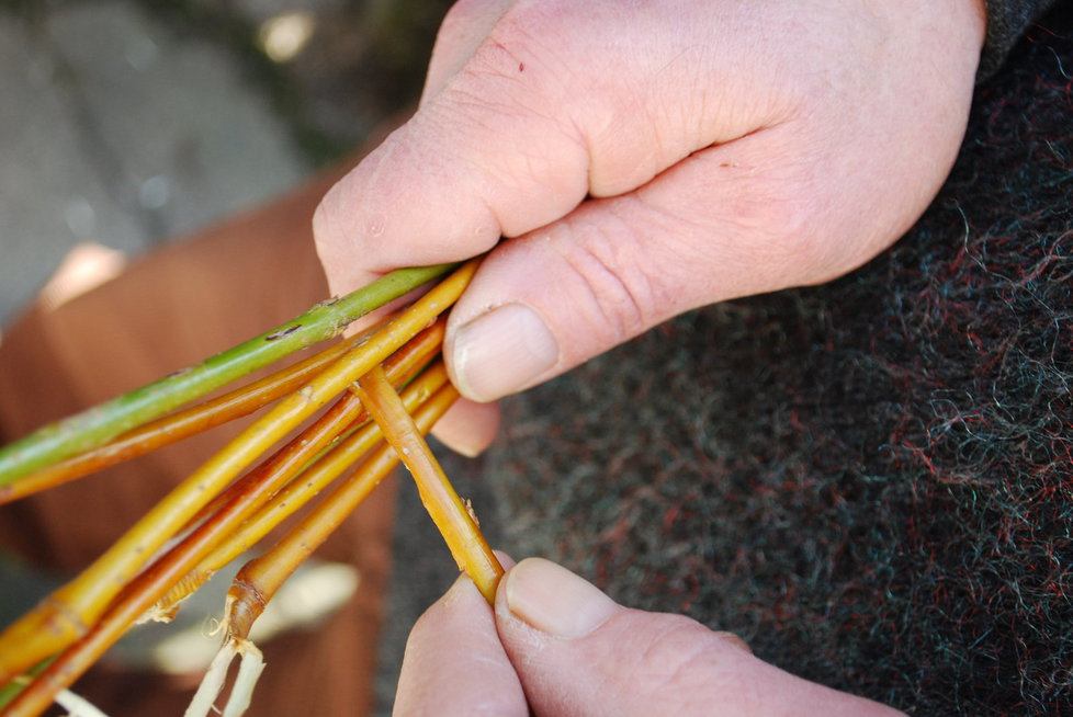 1. Osm prutů vezmeme do rukou a vytvoříme z nich kulatý svazek.