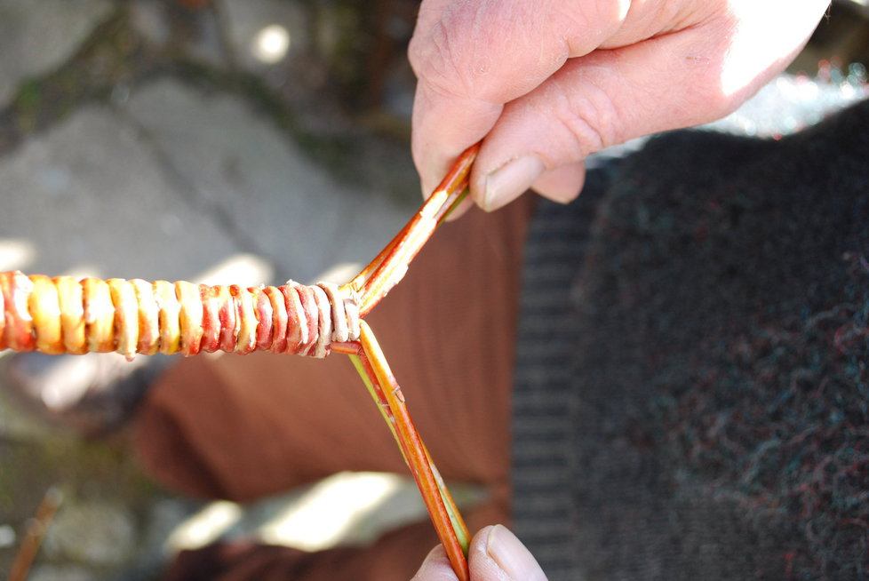 5. Délka rukojeti by měla být 10 až 12_cm. Konec tenkého proutku zatáhneme mezi pruty a ustřihneme.