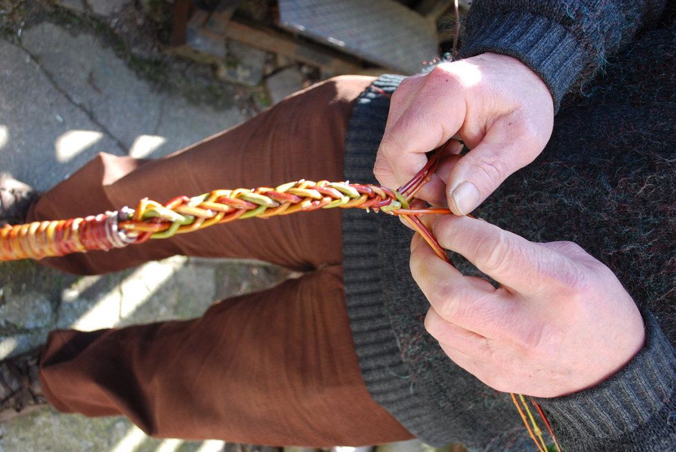 9. Totéž opakujeme zcela zrcadlově na druhé straně a takto postupně střídáme pravou a levou půlku prutů pomlázky.