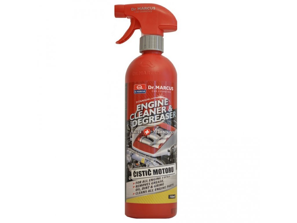 Prostředek, který odstraňuje olej a mastné usazeniny z motoru a zanechává na motoru ochrannou vrstvu. Nepoškozuje gumové ani plastové díly motoru.