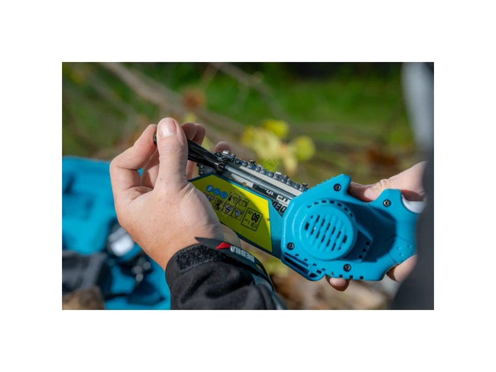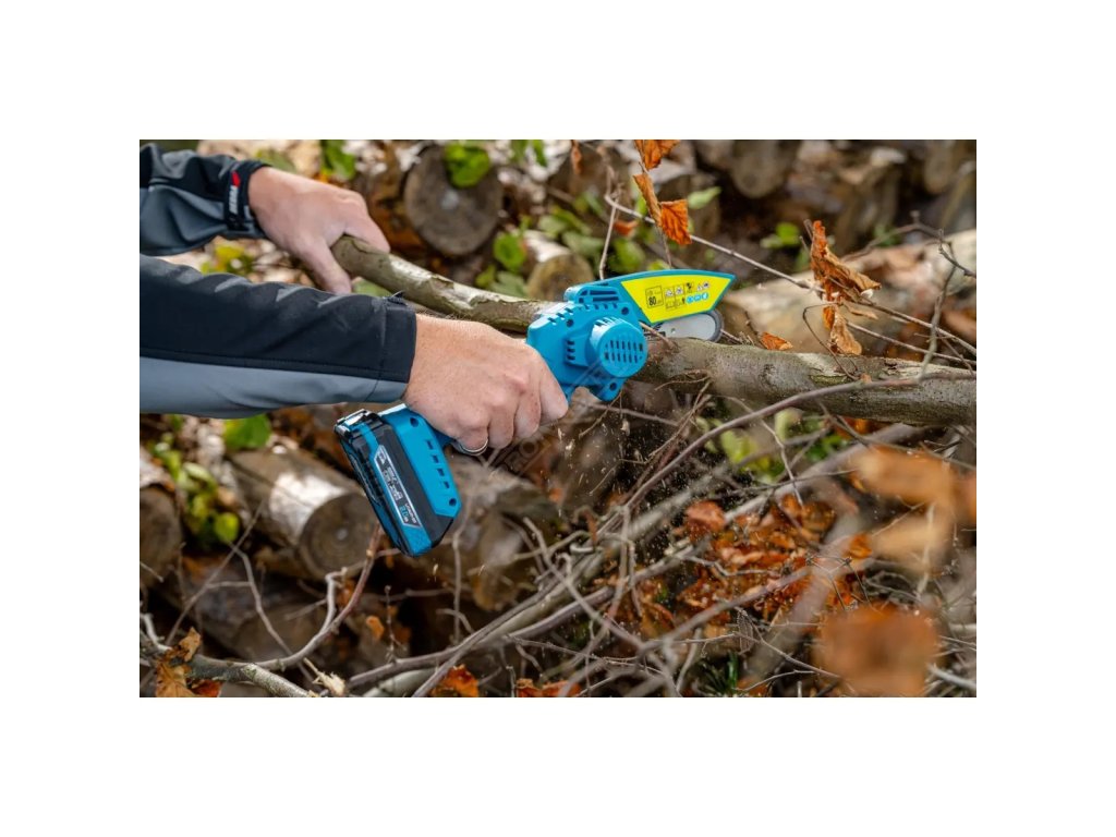 Zařízení je vybaveno blokací proti nechtěnému zapnutí, což zvyšuje bezpečnost používání – zvláště v zahradních podmínkách, kde je snadné nechtěně stisknout spoušť. To je velmi důležité při práci v úzkých prostorách, husté vegetaci nebo během přestávek, kdy pila je držena v ruce nebo odložena stranou. Akumulátorová mini pila s funkcí blokace pomáhá předcházet riziku nekontrolovaného spuštění řetězu, což chrání nejen uživatele, ale i samotné zařízení.