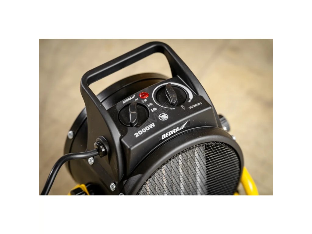 Elektrický ohřívač DED9930C je zařízení určené pro vnitřní použití. Je určen k vytápění obytných a technických místností, jako jsou sklepy, garáže, dílny atd. Zařízení je určeno k použití jako přídavný zdroj tepla, nemůže být hlavním zdrojem tepla. Nastavením knoflíku teploty na minimální hodnotu lze zařízení použít jako ventilátor bez funkce topení. Keramické topné těleso (PTC) zajišťuje pocit tepla téměř okamžitě po spuštění.