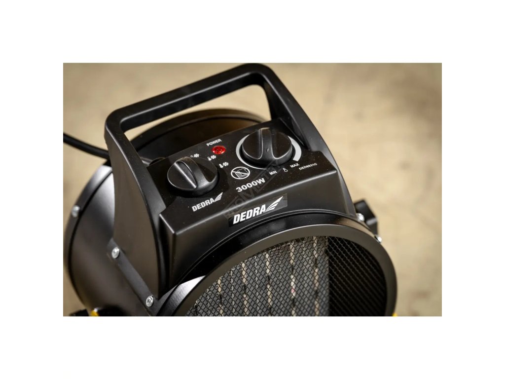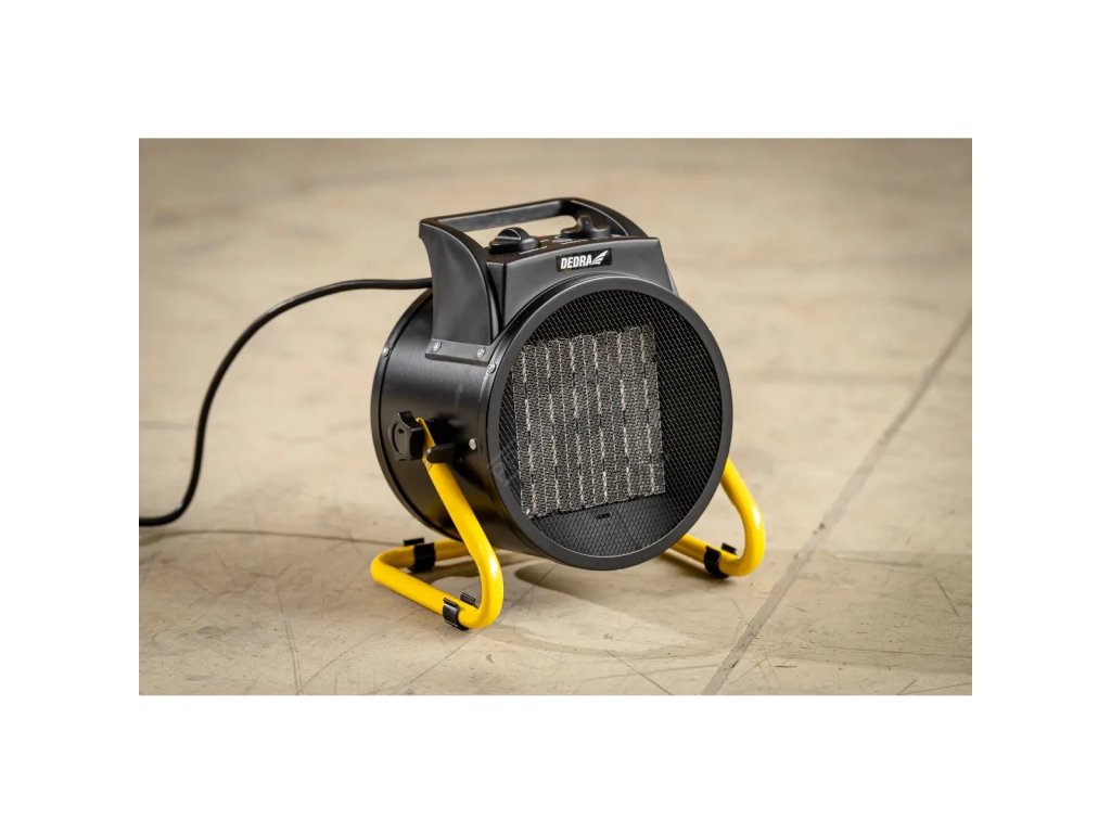 Elektrický ohřívač DED9931C je zařízení určené k použití v uzavřených místnostech. Je určen k vytápění obytných a technických místností, jako jsou sklepy, garáže, dílny atd. Zařízení je určeno k použití jako přídavný zdroj tepla, nemůže být hlavním zdrojem tepla. Nastavením knoflíku teploty na minimální hodnotu lze zařízení použít jako ventilátor bez funkce topení. Keramické topné těleso (PTC) zajišťuje pocit tepla téměř okamžitě po spuštění. Kovové pouzdro. Pohodlná přepravní rukojeť.
