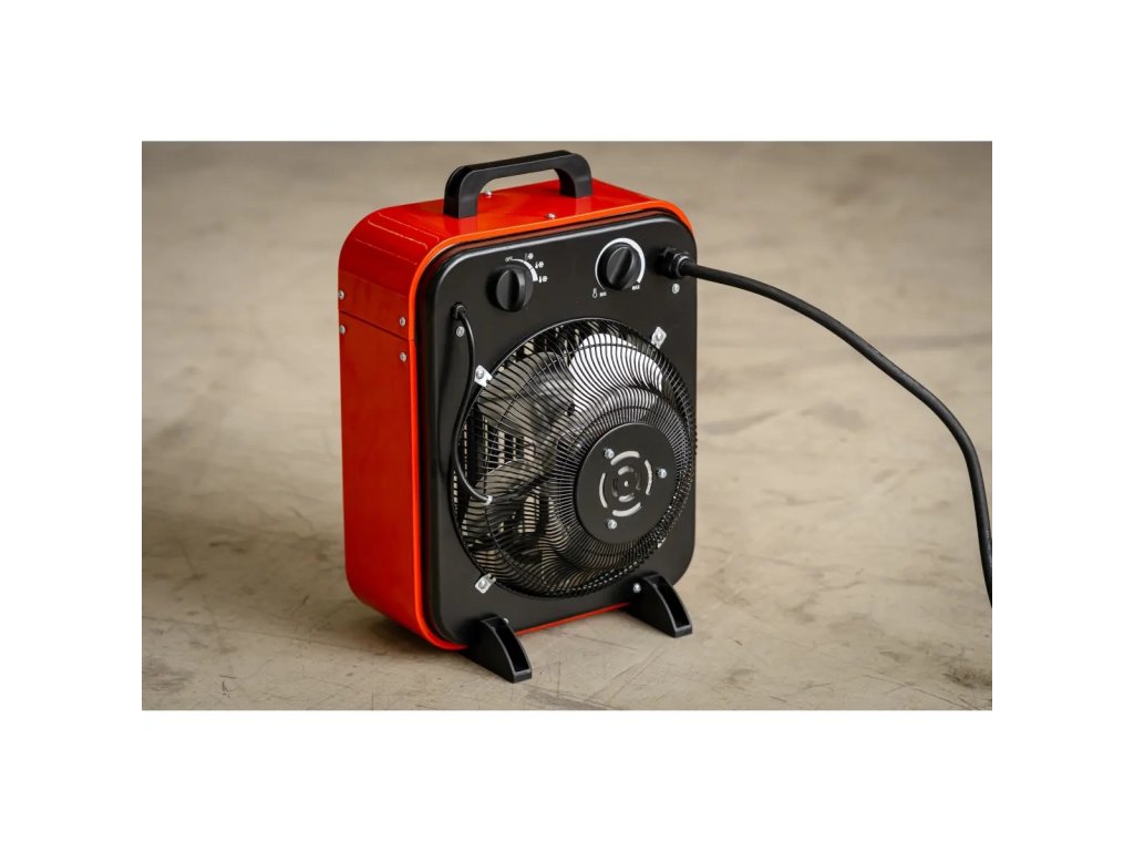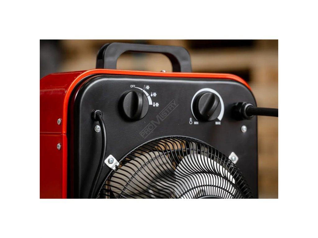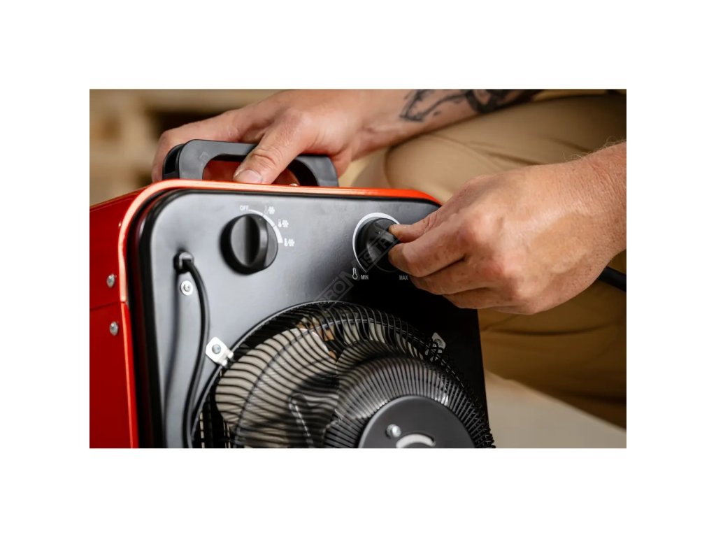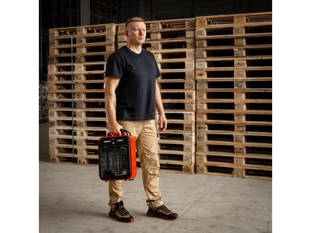 Elektrický ohřívač DED9922B je zařízení určené k použití v uzavřených místnostech. Používá se k vytápění obytných a technických místností, jako jsou sklepy, garáže, dílny, výrobní haly, sklady atd. Zařízení je určeno k použití jako přídavný zdroj tepla, nemůže být hlavním zdrojem tepla. Zařízení má ochranu proti přehřátí, je navrženo pro nepřetržitý provoz a během provozu neprodukuje nečistoty ani zápach. Byl použit axiální ventilátor a odolné nízkoteplotní ohřívače. Díky účinnému ventilátoru má zařízení velký průtok vzduchu. Ohřívač má zabudované teplotní čidlo, regulátor výkonu a termostat. Nastavením knoflíku teploty na minimum lze zařízení použít jako ventilátor bez funkce topení.