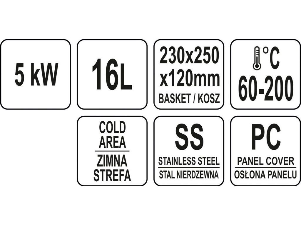 Vnější plášť i víko fritézy jsou vyrobeny z vysoce kvalitní nerezové oceli. Díky tomu se fritéza rychle čistí a udržuje v čistotě. Fritéza YATO má velmi odolný koš s plastovou, nezahřívací rukojetí. Na druhou stranu speciální háčky umožňují zavěšení koše přímo nad nádrž, čímž se minimalizuje riziko stříkání oleje na pracovní desku. To výrazně zvyšuje čistotu pracoviště a minimalizuje čas potřebný na úklid.