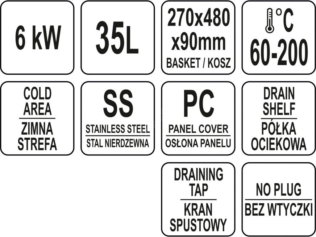 Fritéza YATO má navíc vypouštěcí kohout, který umožňuje vypouštění oleje z nádrže. Toto je obzvláště užitečná funkce, která umožňuje velmi rychlou výměnu oleje. Kromě toho umožňuje nalévání starého oleje přímo do kanystru, čímž se minimalizuje riziko jeho rozlití.