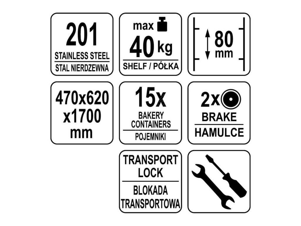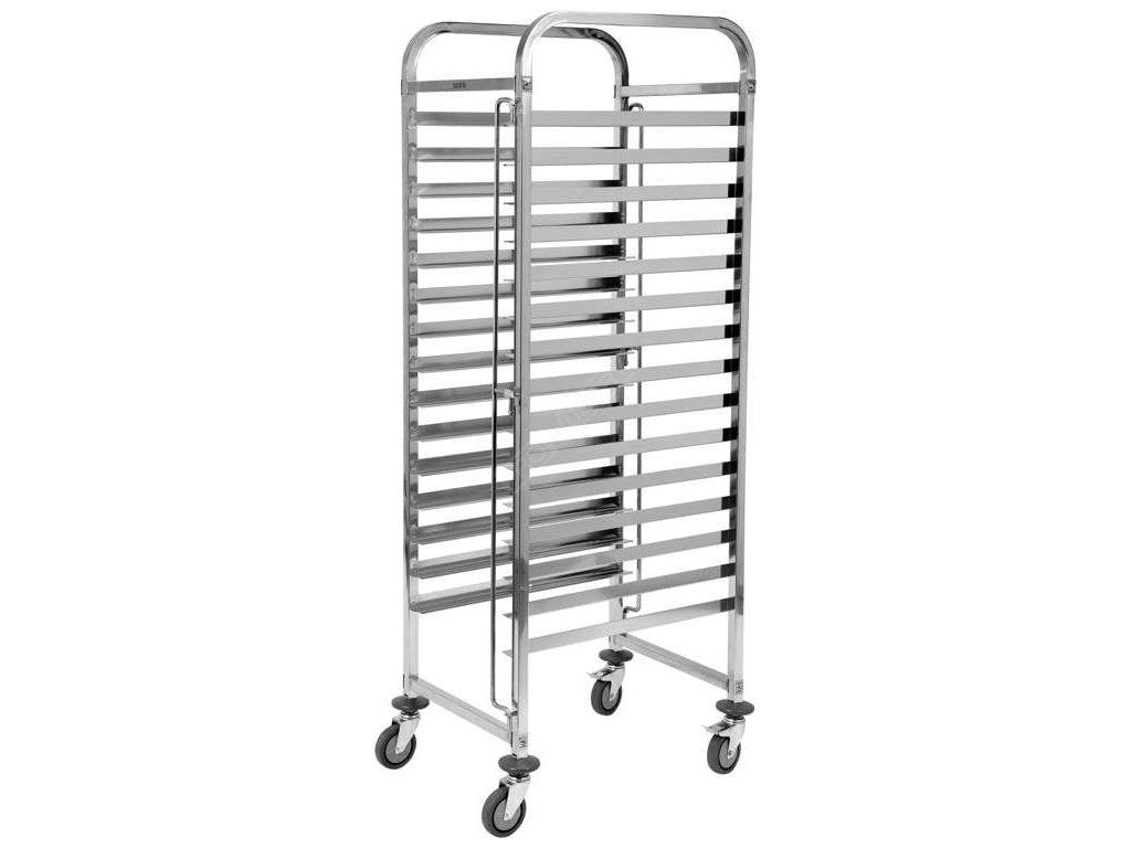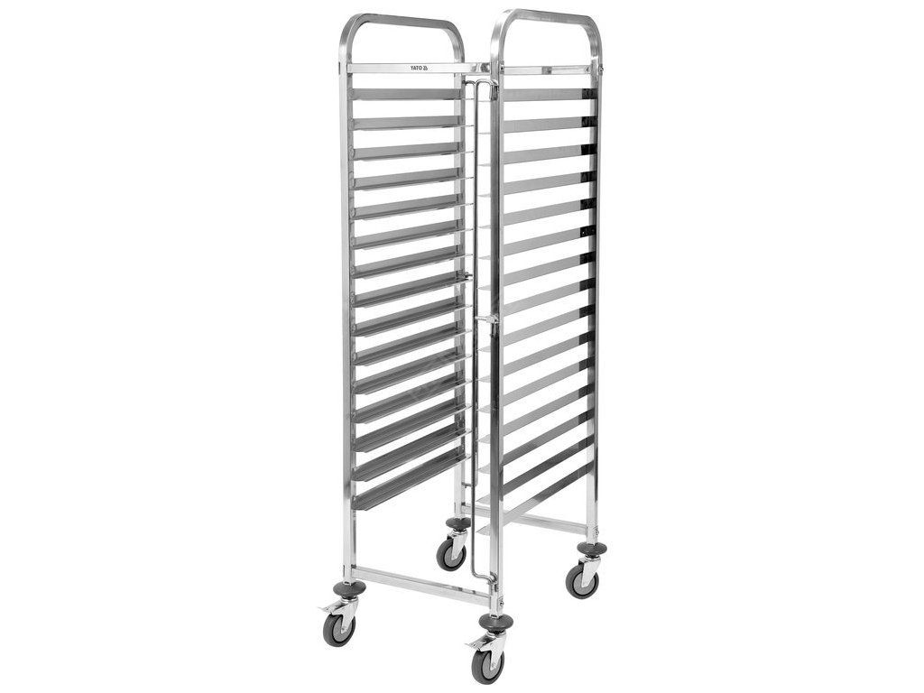 Přepravní vozík YATO umožňuje přepravu 15 číšnických podnosů nebo plechů na pečení (400x600 mm). Je určen pro profesionální použití ve stravovacích zařízeních.