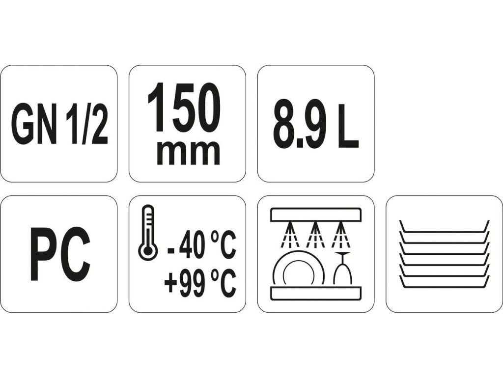 Gastronomická polykarbonátová nádoba GN 1/2 150 mm je profesionální nádoba YATO z polykarbonátu o objemu 8,9 l. Nádoby YATO jsou vyrobeny z kvalitního polykarbonátu, který se vyznačuje velmi vysokou trvanlivostí a odolností vůči mechanickému poškození, což zaručuje velmi dlouhou životnost.