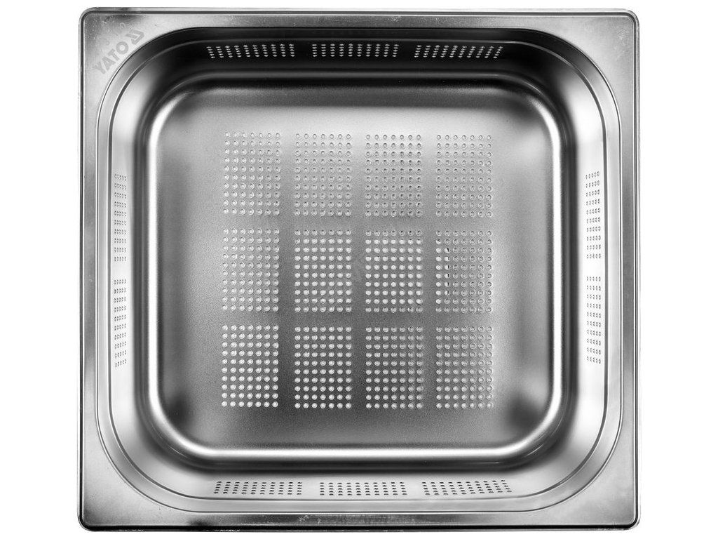 Perforovaná nerezová nádoba GN 2/3 100 mm je profesionální nádoba YATO z nerezové oceli, rozměry 2/3, 100 mm, objem 9 l.
