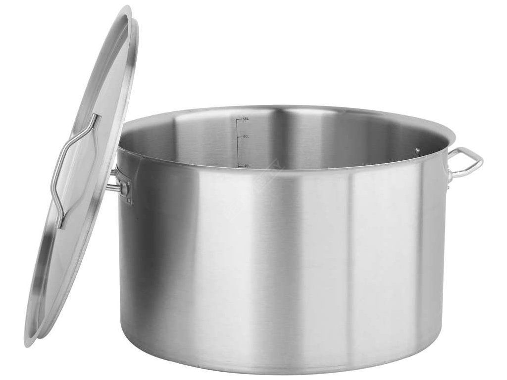 Profesionální střední hrnec s poklicí o rozměrech 50 x 30 cm a objemem 58 l.