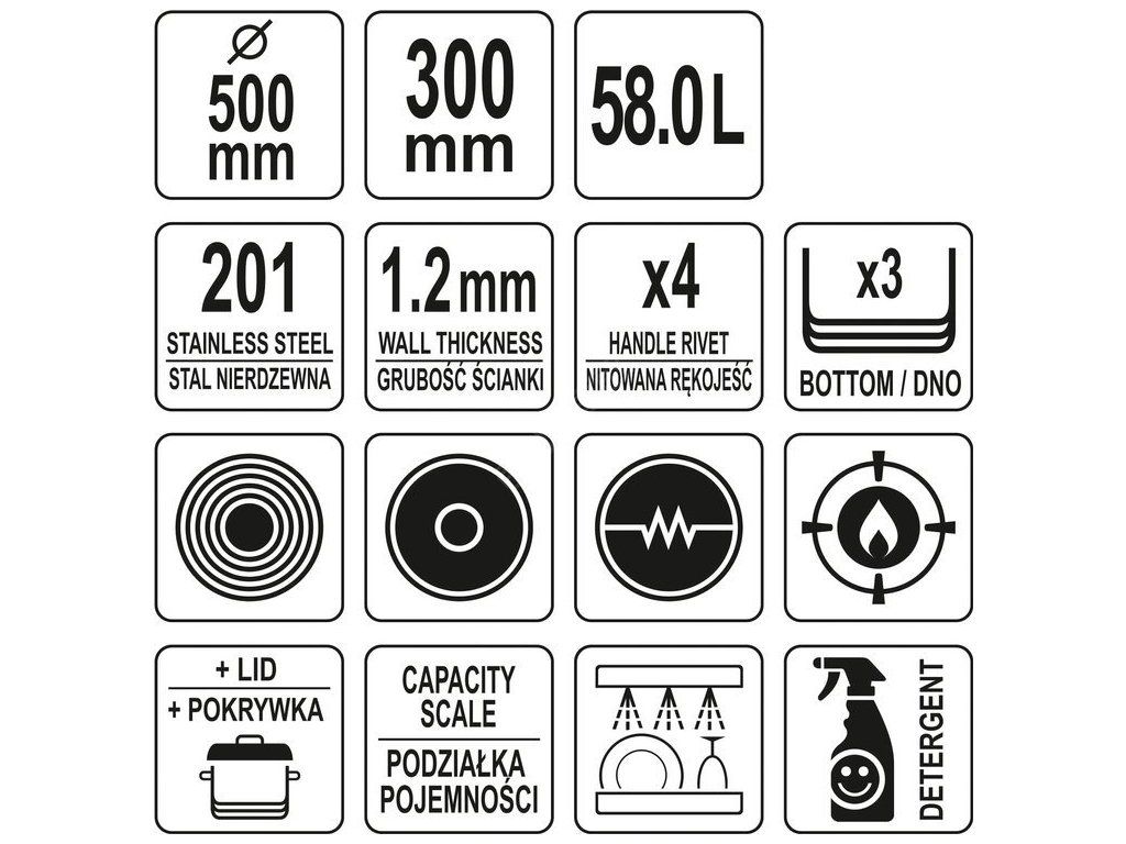 Hrnec střední s poklicí NEREZ 50x30 58l Yato Gastro YG-00052