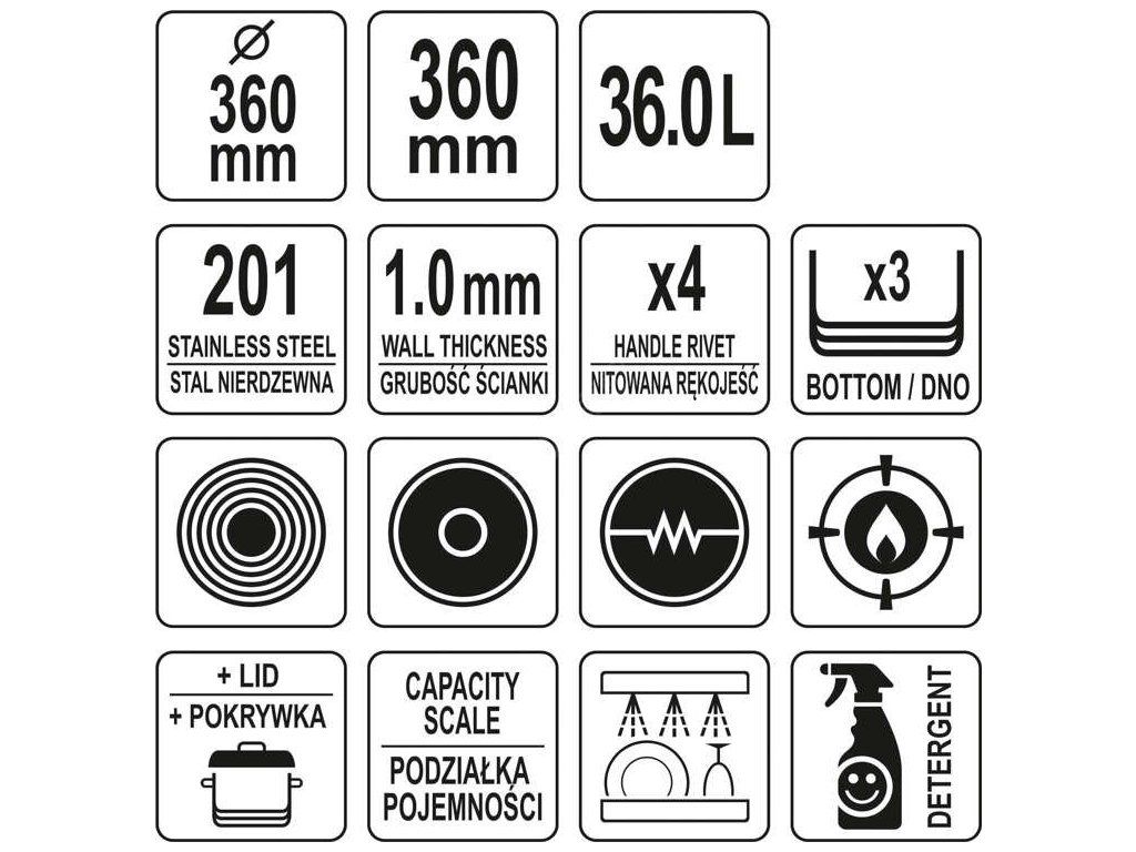 Hrnec vysoký s poklicí NEREZ 36x36cm 36l Yato Gastro YG-00016