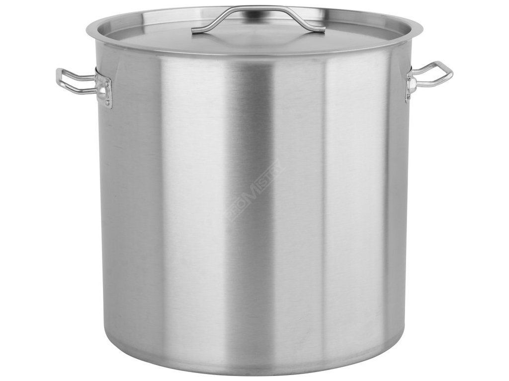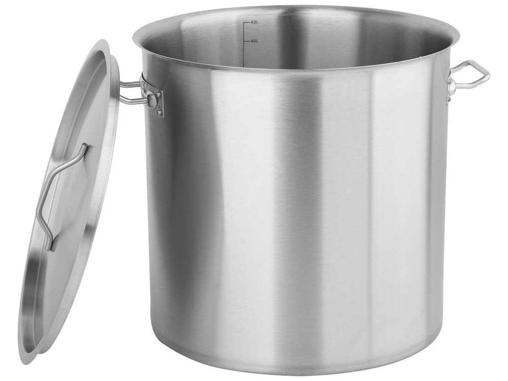 Profesionální vysoký hrnec s poklicí o rozměrech 38 x 38 cm a objemem 43 l.
