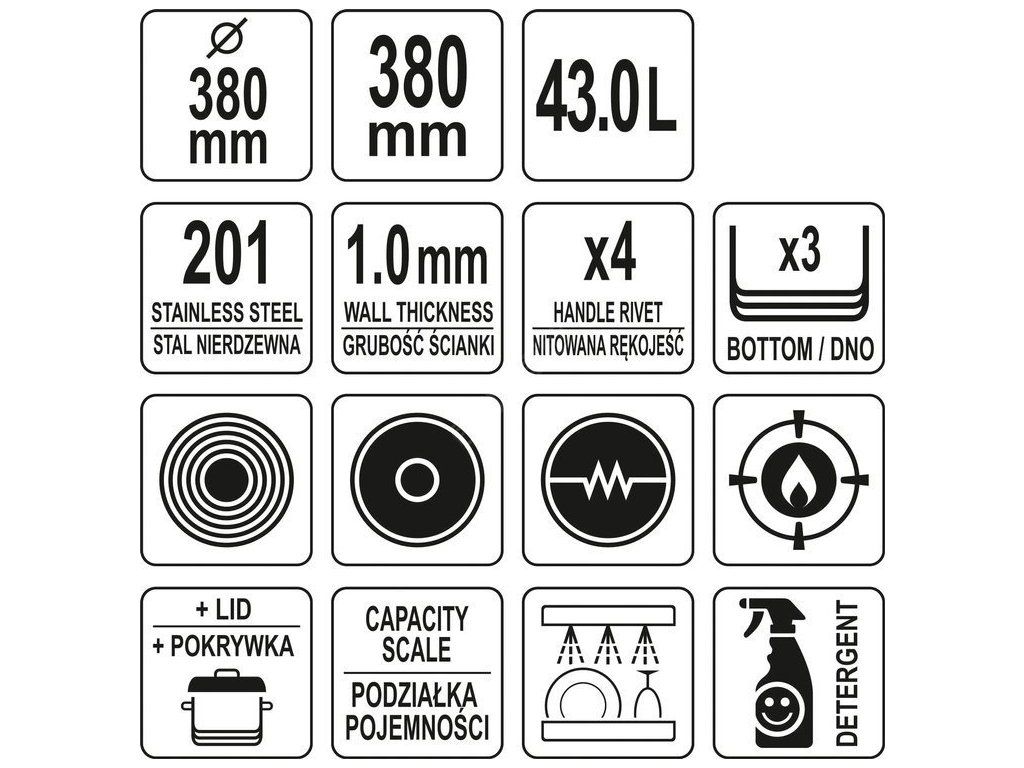 Hrnec vysoký s poklicí NEREZ 38x38cm 43l Yato Gastro YG-00017