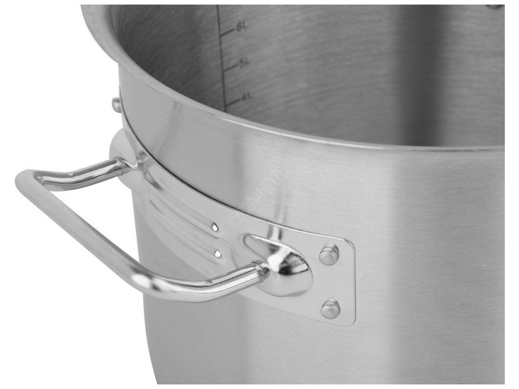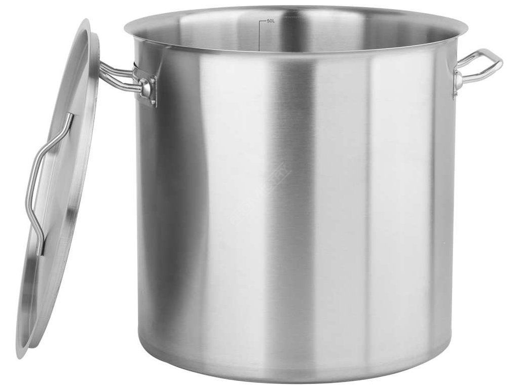 Profesionální vysoký hrnec s poklicí o rozměrech 40 x 40 cm a objemem 50 l.