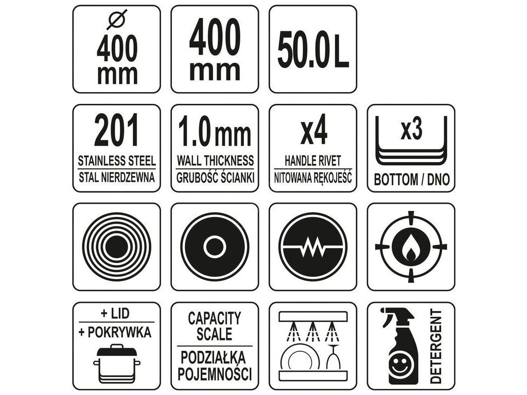 Hrnec vysoký s poklicí NEREZ 40x40cm 50l Yato Gastro YG-00018