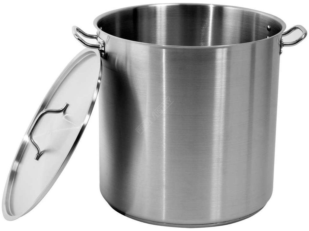 Profesionální vysoký hrnec s poklicí o rozměrech 45 x 45 cm a objemem 71,6 l.