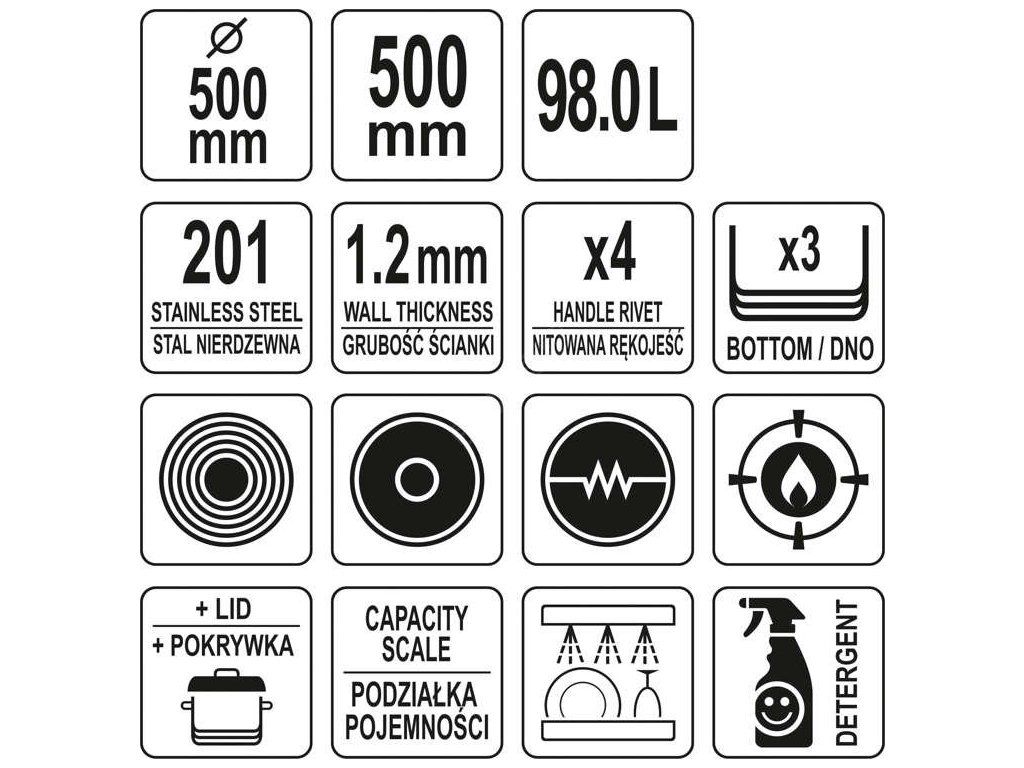 Hrnec vysoký s poklicí NEREZ 50x50cm 98l Yato Gastro YG-00020
