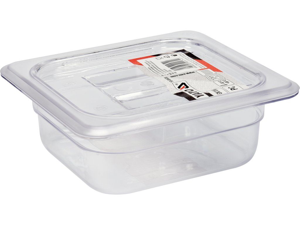 Víko pro nádobu GN 1/6 je vyrobeno z polykarbonátu.