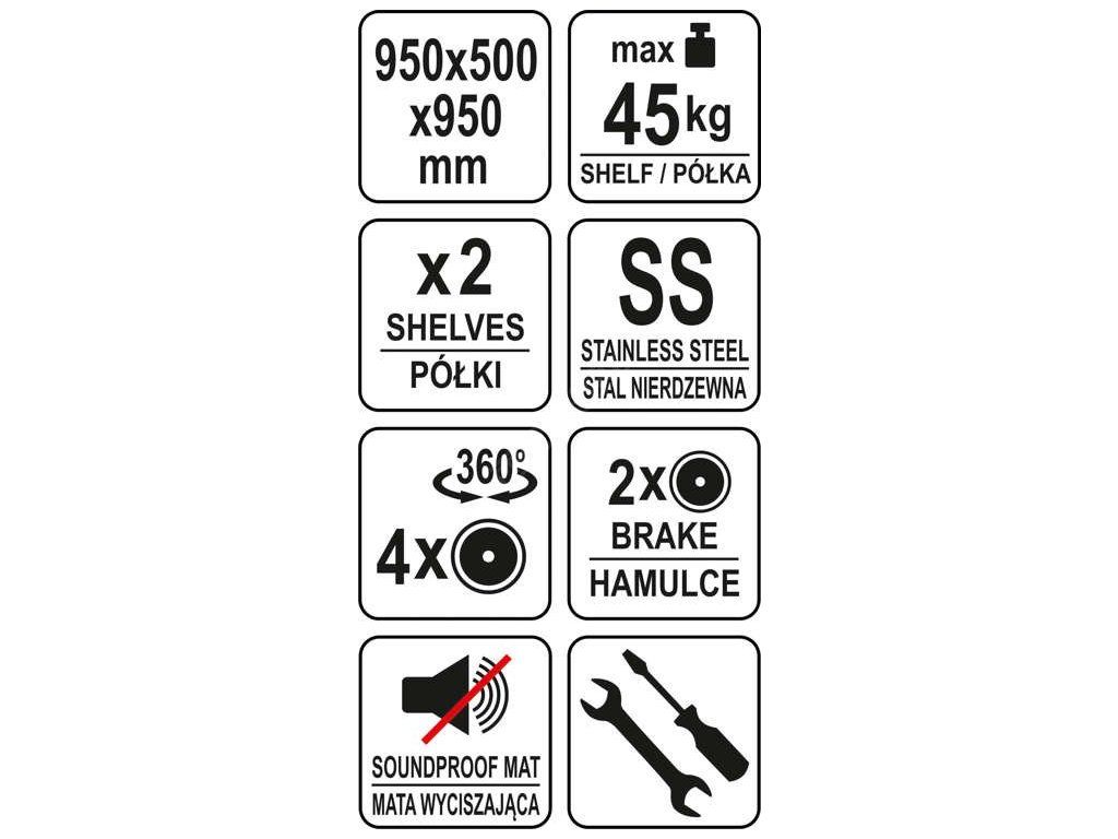 Číšnický vozík 890x495mm 2 police NEREZ Yato Gastro YG-09095