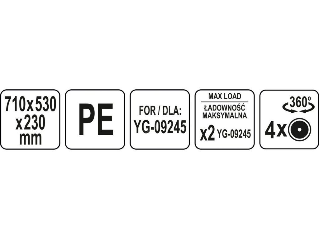 Přepravní vozík pro tepelně izolační kontejner YATO YT-09245. Vozík YATO je vyroben z vysoce kvalitního polypropylenu, odolného proti UV záření a nárazům. Jeho masivní konstrukce umožňuje současnou přepravu až 2 izolovaných kontejnerů.