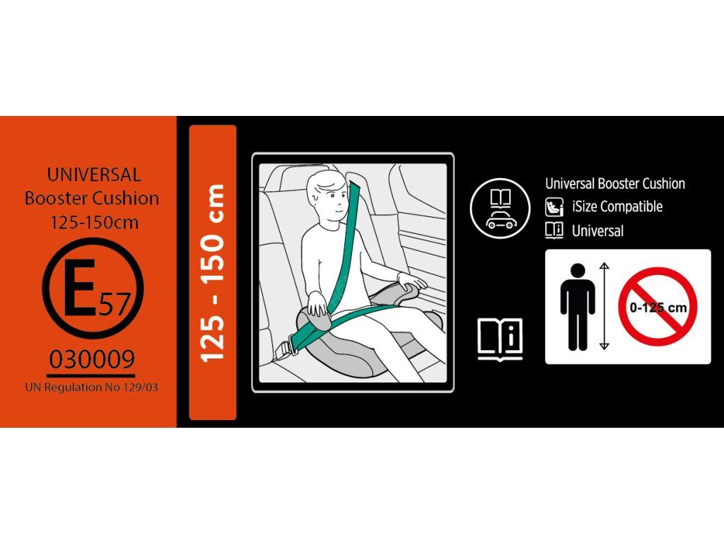 Podsedák, s novou homologací ECE R129 (kompatibilní s normou iSize). Podsedák je vhodný pro děti s výškou od 125 do 150 cm.