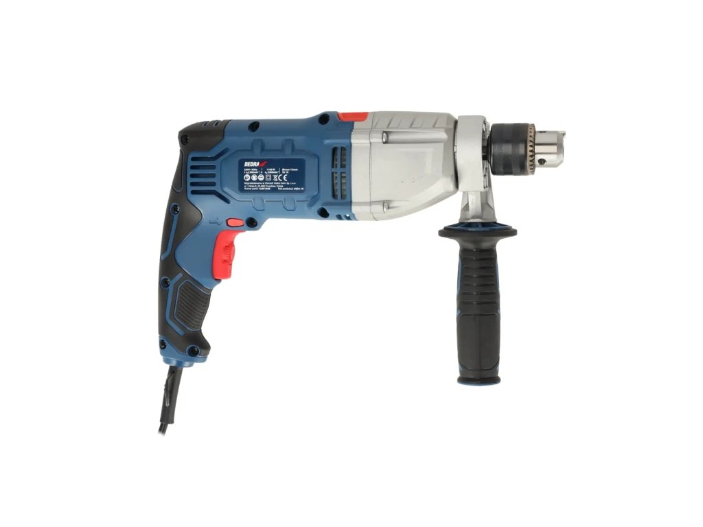 Příklepová vrtačka DED7961 je určena pro lehké renovace a stavební práce. Otáčky vrtačky lze nastavit v rozsahu od 0 do 1 200 otáček za minutu u prvního rychlostního stupně a od 0 do 3 200 otáček za minutu u druhého rychlostního stupně. Aby byl zajištěn komfort práce, má vrtačka pogumované rukojeti a spínač pro nepřetržitý provoz. Další výhodou tohoto modelu je další 360 ° nastavitelná rukojeť s omezovačem hloubky. Motor je uzavřen v utěsněném hliníkovém krytu.