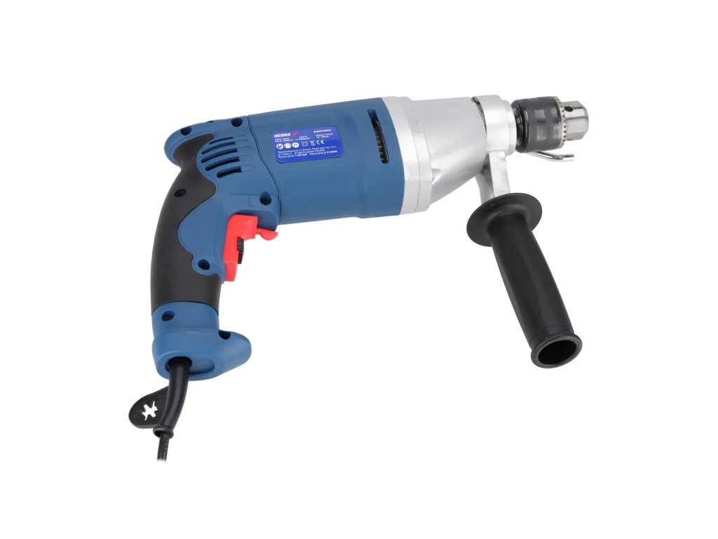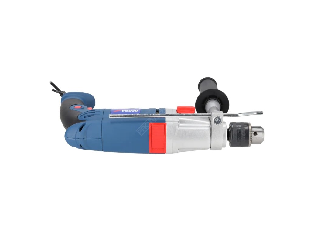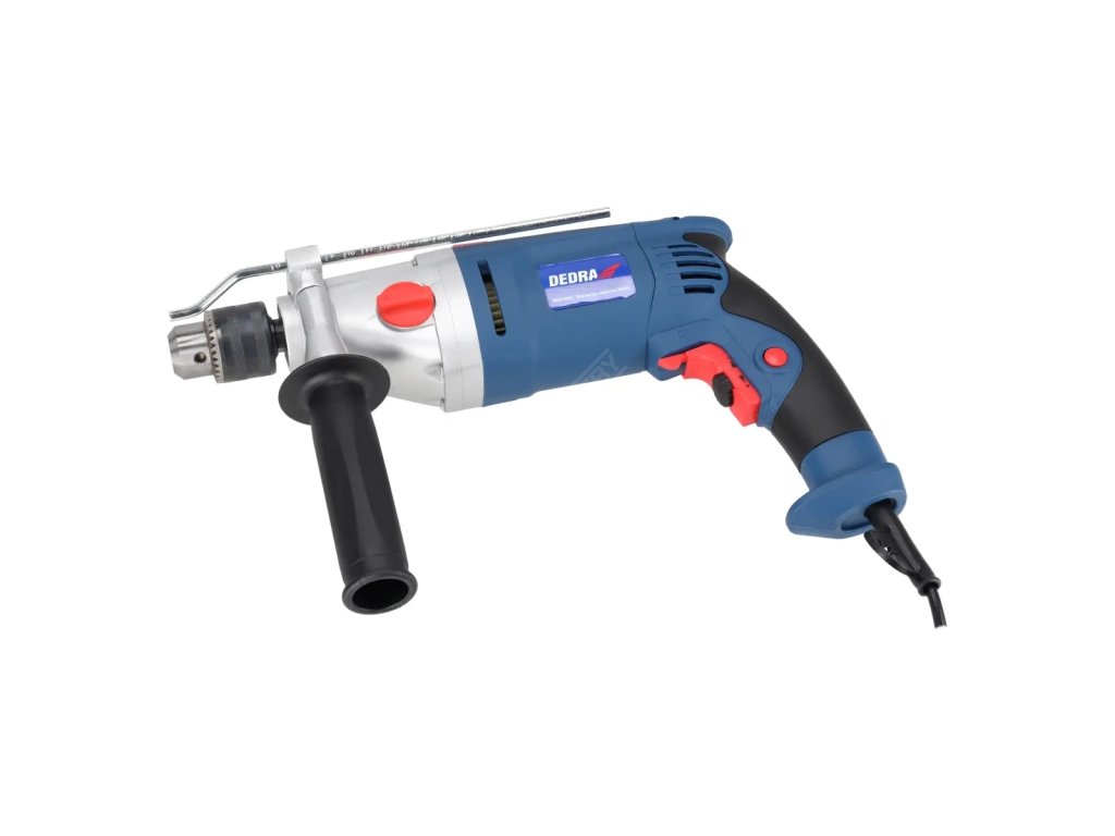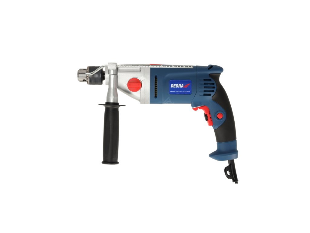 Příklepová vrtačka DED7962 je určena pro lehké renovace a stavební práce. Pomocí větrného mlýna můžeme vyvrtat otvory do materiálů, jako je beton, cihly, kov nebo dřevo. Otáčky vrtačky lze nastavit v rozsahu od 0 do 1 200 otáček za minutu u prvního rychlostního stupně a od 0 do 3 200 otáček za minutu u druhého rychlostního stupně. . Pro zajištění pohodlí při práci má vrtačka pogumované rukojeti a spínač nepřetržitého provozu. Další výhodou tohoto modelu je další 360 ° nastavitelná rukojeť s omezovačem hloubky a samosvorným kovovým sklíčidlem. Motor je uzavřen v utěsněném hliníkovém krytu.