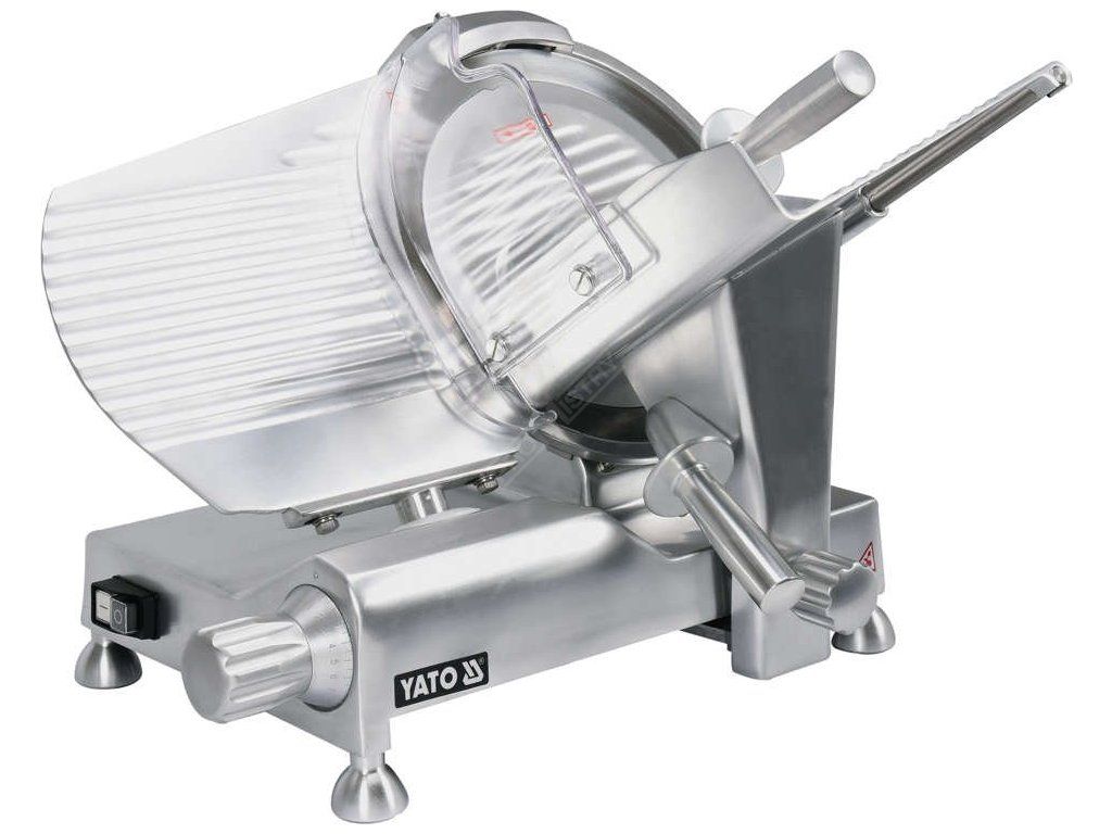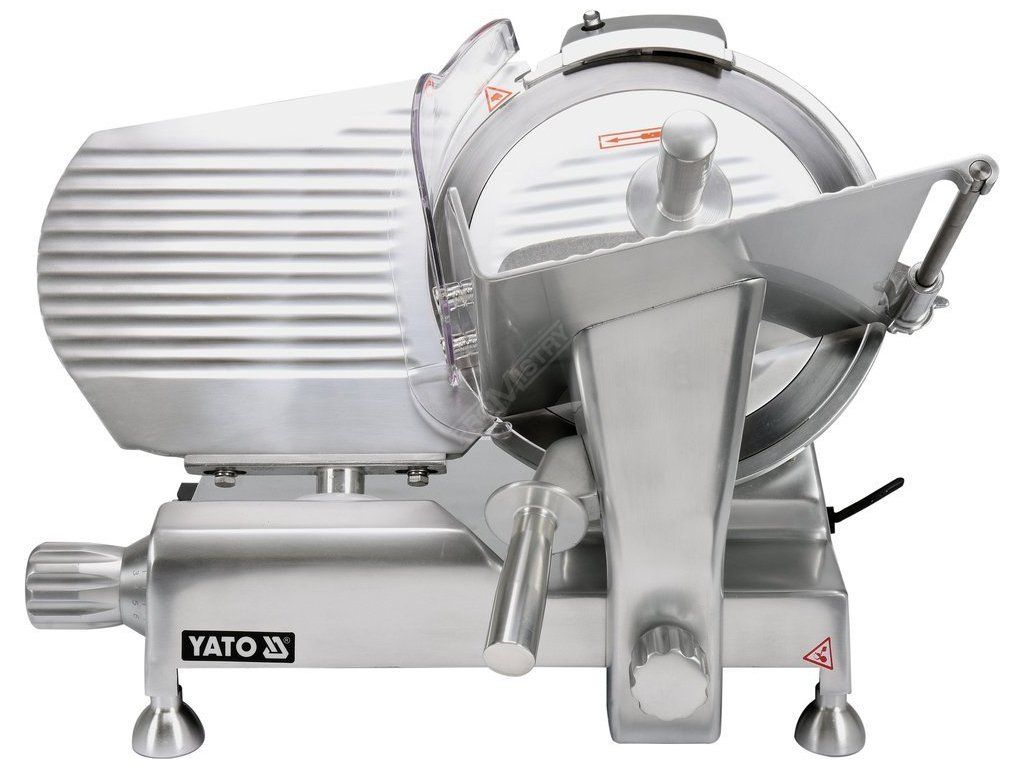 Kráječ na uzeniny a sýry. Základna je vyrobena z vysoce kvalitní slitiny hliníku s lakovaným šedým povrchem, velmi snadno se čistí a udržuje v čistotě. Další výhodou kráječe YATO je odnímatelný podavač, který lze rychle odšroubovat, což výrazně usnadňuje přístup do těžko přístupných zákoutí a usnadňuje jejich čištění od zbytků řezaných produktů.