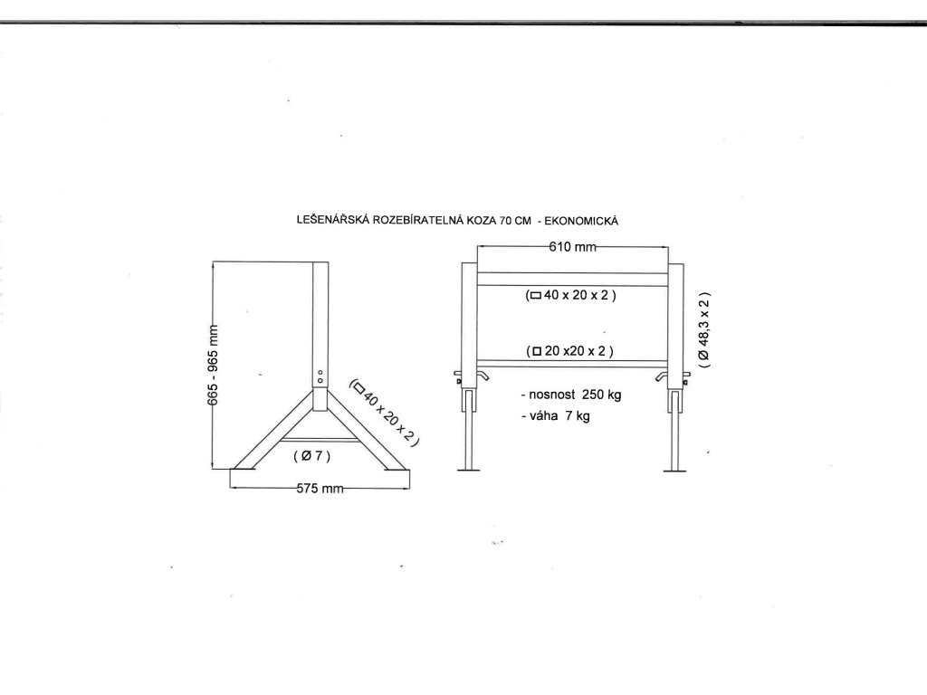 Lešenářská koza 665-965x610 mm skládací, ekonomická MAGG 120309