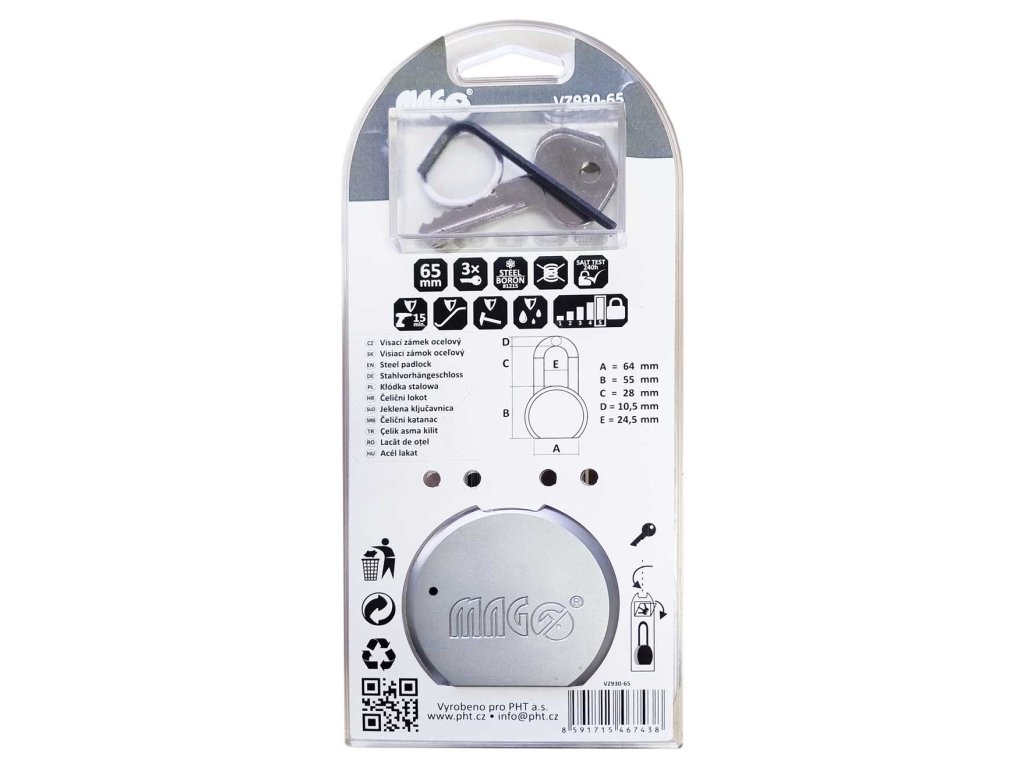 Visací zámek ocelový 65 mm MAGG VZ930-65