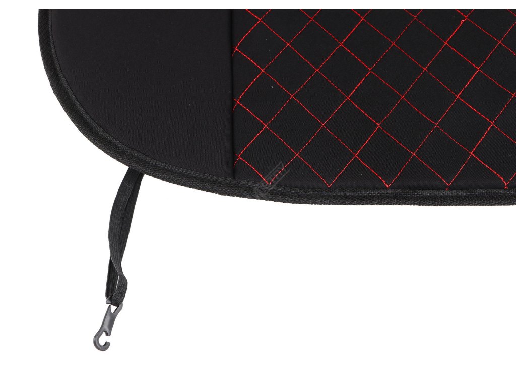 Autopotah na sedačku SIXTOL CAR SEAT COVER PAD 1 je stylový a praktický doplněk pro vaše vozidlo, který chrání originální čalounění před opotřebením a zároveň zvyšuje komfort při jízdě. Kombinace černé barvy s červeným šitím dodává interiéru moderní a elegantní vzhled. Potah je vyroben z černého sendvičového textilu s prodyšnými panely, uvnitř se nachází 1cm silná pěna s hustotou 20D, která poskytuje měkké sezení. Spodní strana je opatřena protiskluzovou gumovou podložkou a černou netkanou textilií pro lepší stabilitu. Uchycení je řešeno pomocí pružných pásků a háčků, což umožňuje rychlou instalaci i sejmutí. Potah je vhodný pro většinu běžných typů předních sedadel.Hlavní výhody: