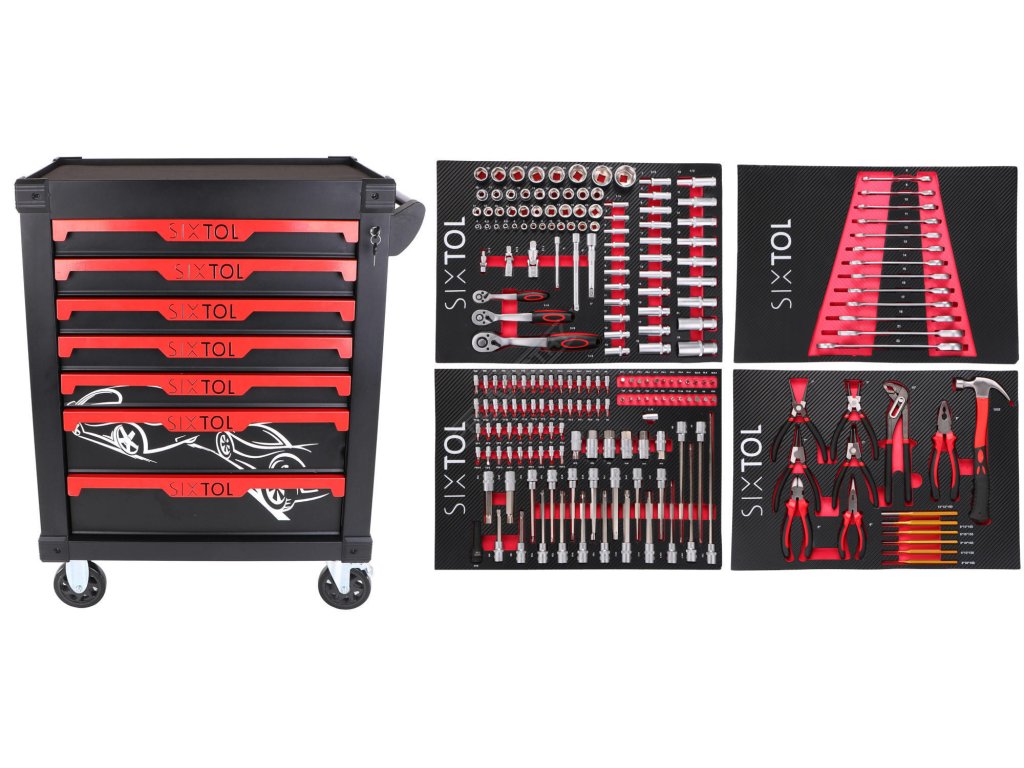 Dílenský vozík na nářadí MECHANIC TROLLEY KEVIN 210, 7 šuplíků, 210 ks nářadí SIXTOL SIXTOL SX8523