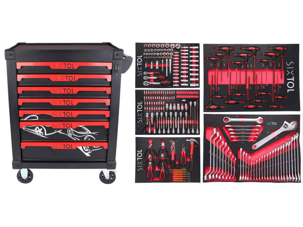 Dílenský vozík na nářadí MECHANIC TROLLEY KEVIN 253, 7 šuplíků, 253 ks nářadí SIXTOL SIXTOL SX8524