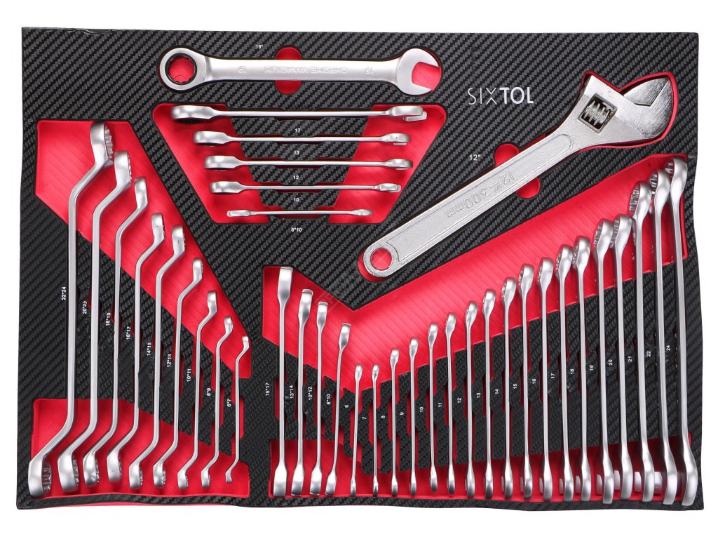 - 3. Šuplík - 39x Kombinované klíče - 18x Torx kombinované klíče: 6; 7; 8; 9; 10; 11; 12; 13; 14; 15; 16; 17; 18; 19; 20; 21; 22; 24 mm