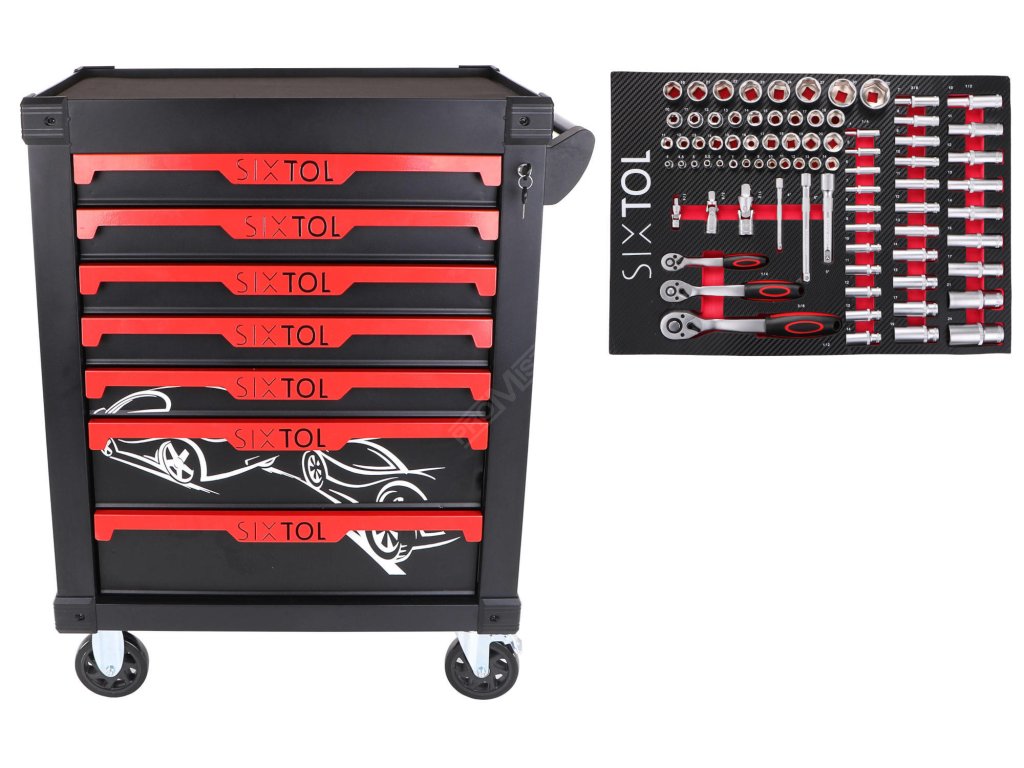 Dílenský vozík na nářadí MECHANIC TROLLEY KEVIN 80, 7 šuplíků, 80 ks nářadí SIXTOL SIXTOL SX8520