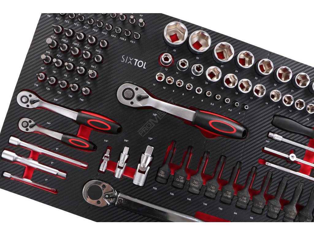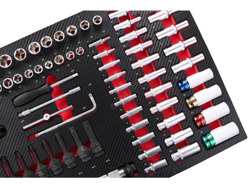 - Obsahuje 1559 ks nářadí v přesných EVA organizérech
