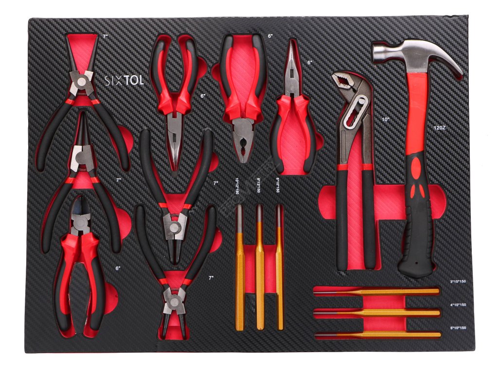 - 2. Šuplík – 16x kleště a další nářadí - 1x Kladivo 340 g