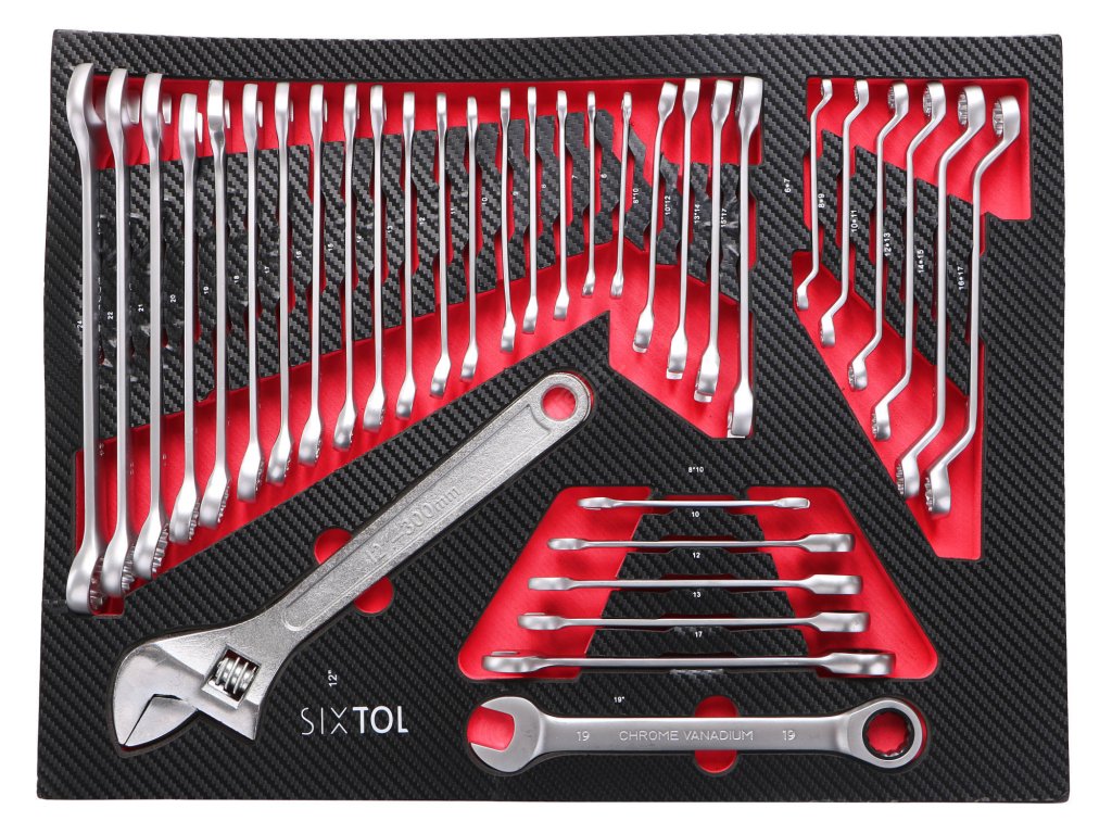 - 3. Šuplík – 35x kombinované klíče - 18x Torx kombinované klíče: 6; 7; 8; 9; 10; 11; 12; 13; 14; 15; 16; 17; 18; 19; 20; 21; 22; 24 mm