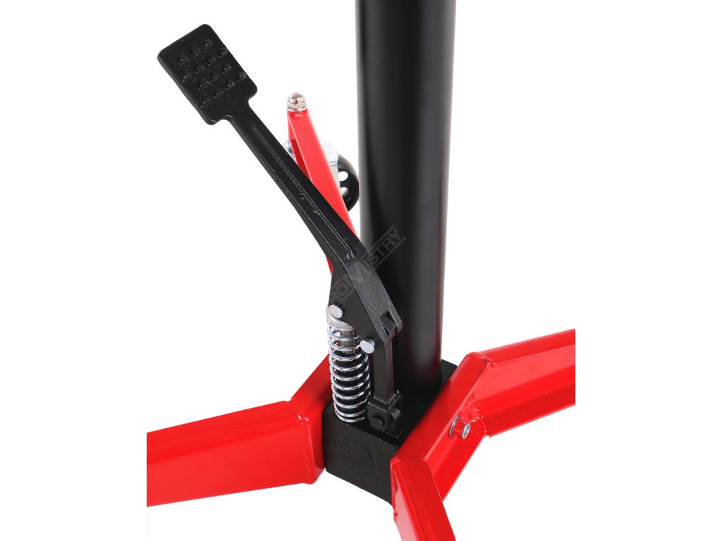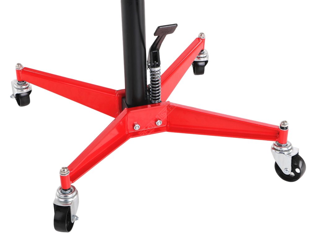 Profesionální zvedák převodovek SX TRANSMISSION JACK 0,5T je nepostradatelným nástrojem v autoservisech, dílnách a garážích. Jeho pevná celokovová konstrukce v kombinaci s hydraulickým mechanismem umožňuje snadné, stabilní a bezpečné zvedání břemen až do hmotnosti 500 kg. Ovládání nožním pedálem zajišťuje přesné a pohodlné nastavení výšky bez potřeby použití rukou, zatímco čtyři otočná kolečka umožňují snadnou manipulaci i v omezeném prostoru. Horní opěrný kříž ve tvaru písmene X poskytuje výbornou stabilitu břemene a zabraňuje nechtěnému pohybu. Díky výškovému rozsahu od 109 do 189 cm a kompaktní konstrukci je zvedák ideálním řešením pro práci pod vozidly umístěnými na zvedáku.Hlavní výhody:
