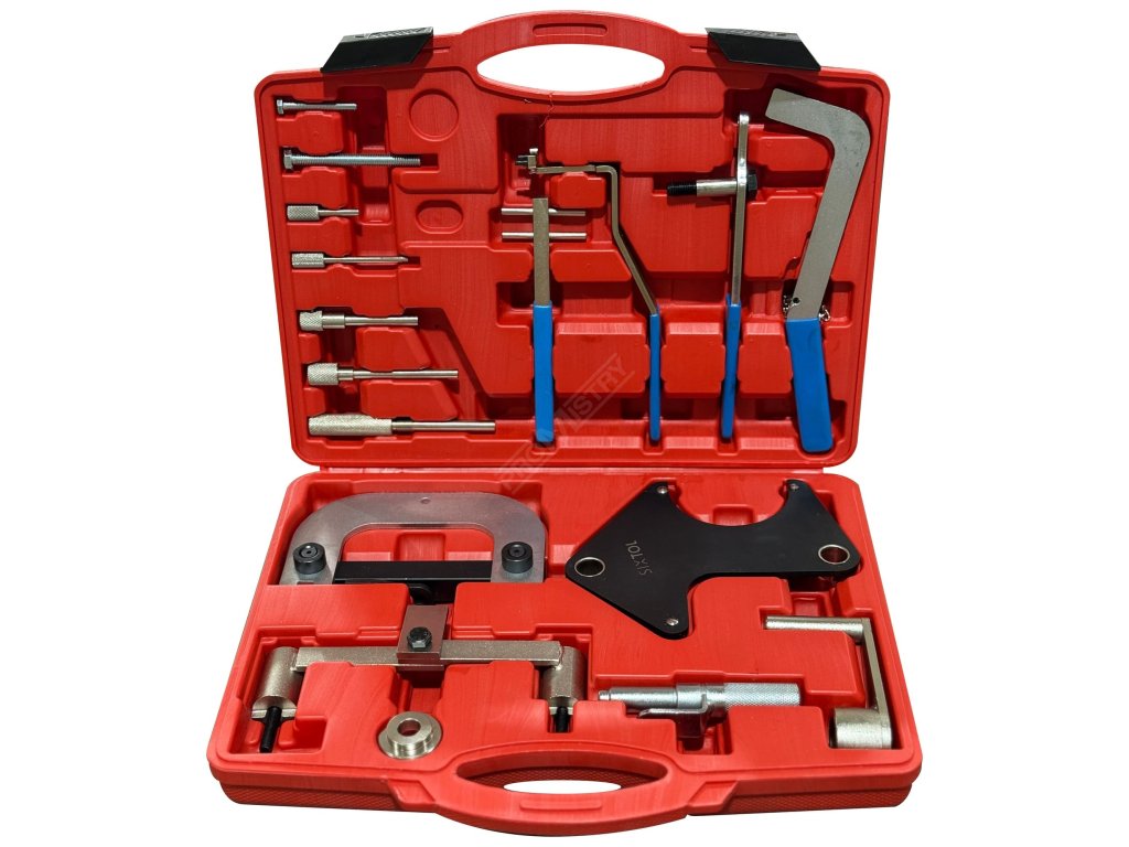 Sada pro aretaci motoru SIXTOL MECHANIC ENGINE TIMING SET 2 je určena pro fixaci vačkové a klikové hřídele při nastavování časování motorů Renault. Přípravky umožňují přesné zajištění rozvodových částí v požadované poloze při výměně rozvodového řemene nebo při kontrole časování, čímž pomáhají předejít nesprávnému nastavení motoru. Konstrukce jednotlivých nástrojů zajišťuje stabilní uchycení a kontrolovaný postup práce při servisních zásazích na rozvodovém mechanismu. Sada je vhodná pro údržbu a opravy motorů Renault a všechny součásti jsou přehledně uloženy v plastovém kufru pro snadné přenášení a organizaci nářadí.Hlavní výhody: