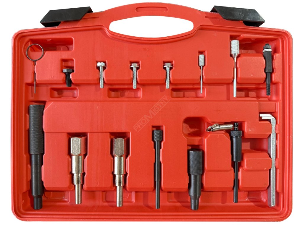 Sada pro aretaci motoru MECHANIC ENGINE TIMING SET 22 je navržena pro přesné zajištění vačkové a klikové hřídele při nastavování časování motoru během servisních a opravárenských prací na vozech Opel a Saab. Umožňuje bezpečnou fixaci rozvodových komponent při výměně rozvodového řemene nebo řetězu i při kontrole správného nastavení časování, což je zásadní pro bezchybný chod motoru a prevenci jeho poškození. Sada je vhodná pro široké spektrum benzínových i dieselových motorů, včetně benzínových jednotek 1.0 / 1.2 / 1.4 16V s rozvodovým řetězem, 1.4 / 1.6 / 1.8 / 2.0 / 2.2 16V s rozvodovým řemenem a dieselových motorů 1.3 CDTi, 1.9 / 2.0 CDTi a 2.0 / 2.2 DTI. Robustní konstrukce jednotlivých přípravků zajišťuje vysokou odolnost při profesionálním použití a přehledné uložení v pevném plastovém kufru usnadňuje organizaci i transport nářadí.Hlavní výhody: