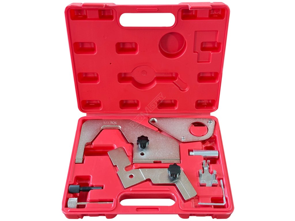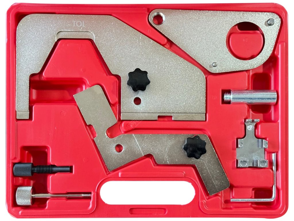 Sada pro aretaci motoru SIXTOL MECHANIC ENGINE TIMING SET 41 je určena pro přesné zajištění vačkové a klikové hřídele při nastavování časování motorů Ford a Land Rover 2.0T. Umožňuje bezpečnou fixaci rozvodových komponentů během servisních zásahů. Přípravky pomáhají udržet jednotlivé části motoru v přesné poloze při výměně rozvodového řemene nebo při kontrole správné synchronizace, což je zásadní pro spolehlivý chod motoru. Konstrukce nástrojů zajišťuje pevné uchycení a stabilitu při práci, čímž přispívá k přesnému a kontrolovanému postupu při opravách rozvodového mechanismu. Jednotlivé díly jsou přehledně uloženy v plastovém kufru, který usnadňuje organizaci nářadí i jeho přenášení.Hlavní výhody: