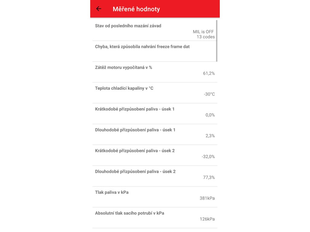 - Zobrazení více než 90 živých parametrů z provozu vozidla a to i v podobě grafu